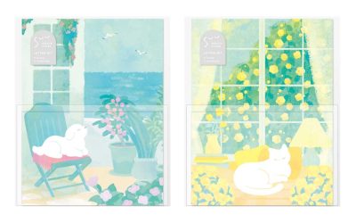 価格:495円(税込)/種類:2種(海風と犬・窓辺の猫)/製品寸法:[便箋]W83×H110mm、[封筒]W90×H60mm/素材:[封筒]トレーシングペーパー/内容:便箋6枚、封筒3枚