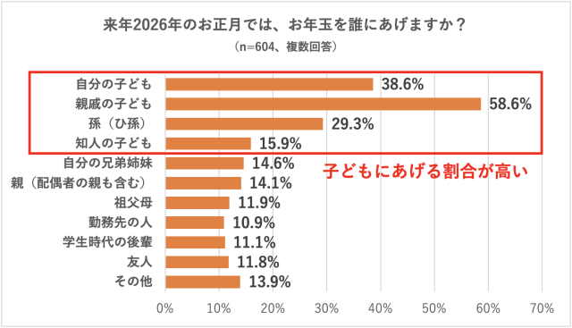(全国の20代以上の男女2,405名に事前調査を実施。「来年2026年のお正月にお年玉をあげる」と回答したうちの604名に「2026年お年玉に関する実態調査」を実施。)